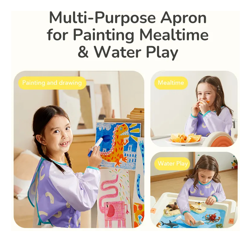 Fácil de limpiar, ligero y cómodo. Protege la ropa durante el juego o la pintura.