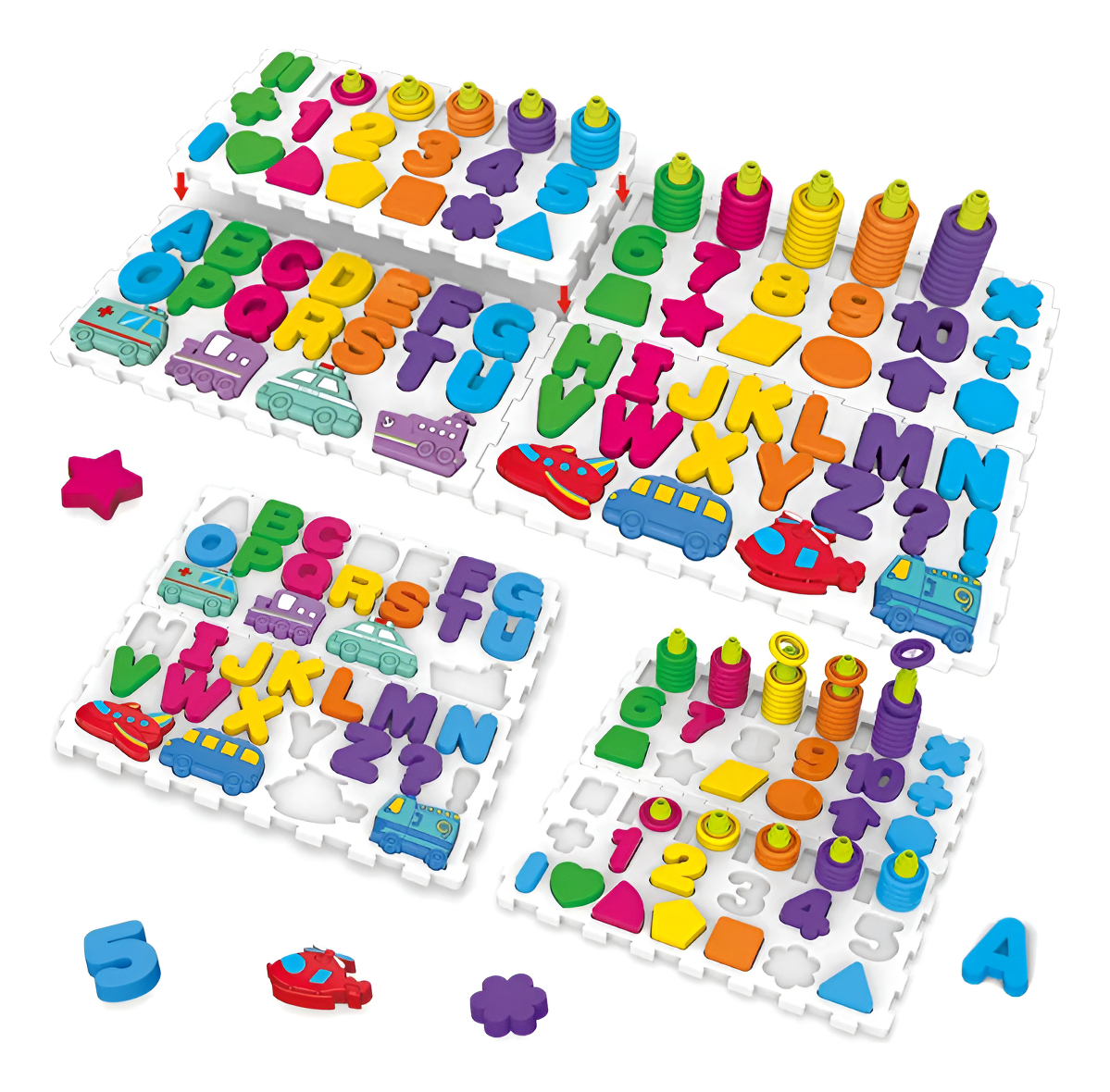 Ideal para niños en edad preescolar, este juego multifuncional les permite aprender letras, números, formas y mucho más, mientras desarrollan habilidades motoras finas y pensamiento lógico.