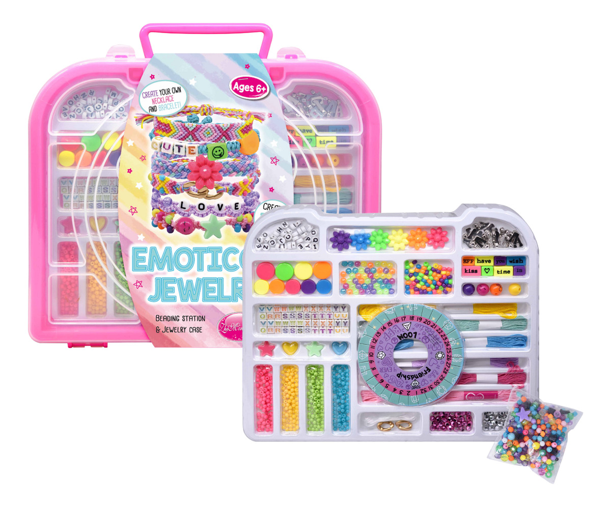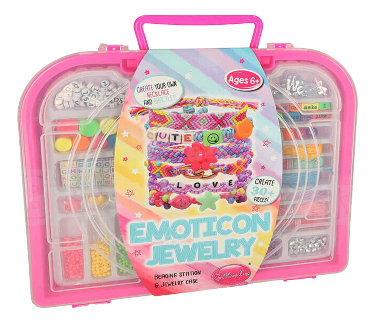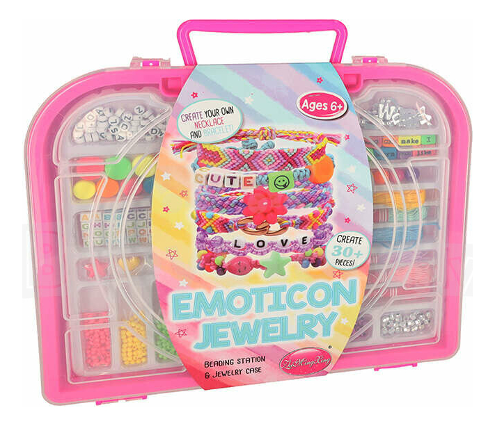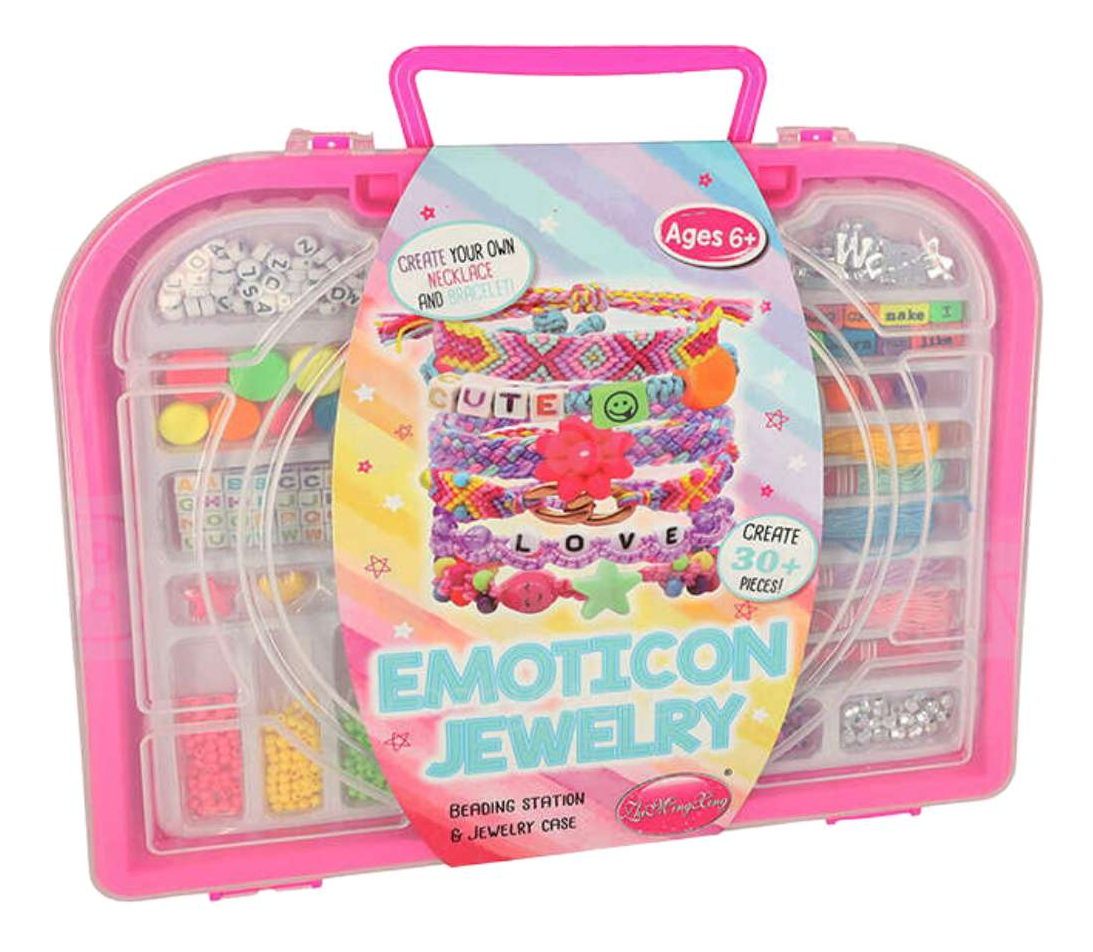 Diviértete creando tus propias joyas con el Emoticon Jewelry Maletín! Este increíble kit incluye todo lo necesario para que puedas diseñar y personalizar collares y pulseras únicos, utilizando divertidas piezas con emoticonos.